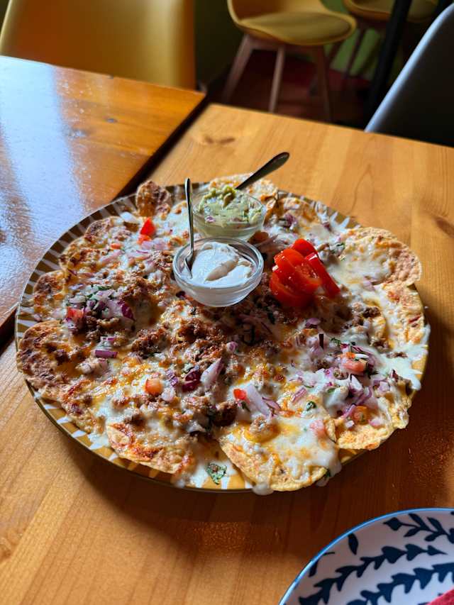 9/10The people working there were very friendly drom the start. And then the food was very flavourful, so that was great. Outside is next to a road, so the ambience is a little less. Bur actually also entertaining with the people passing by. Inside looked very cosy