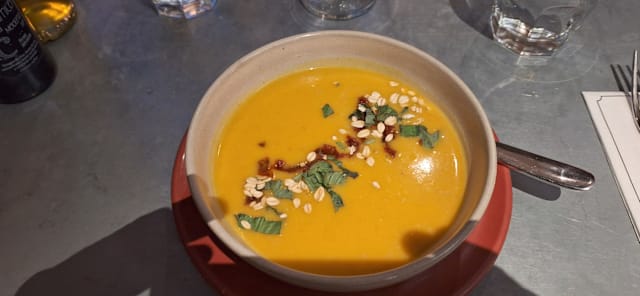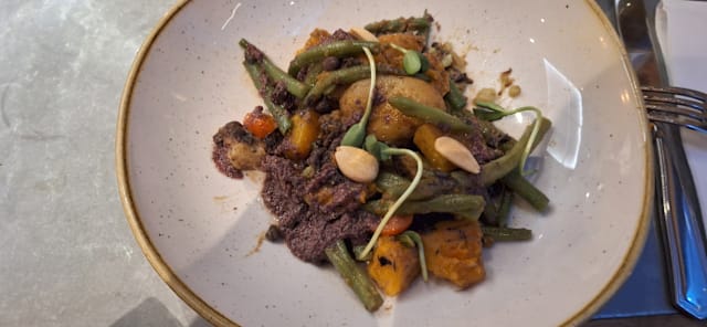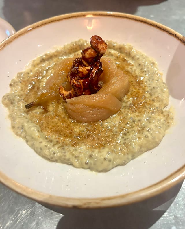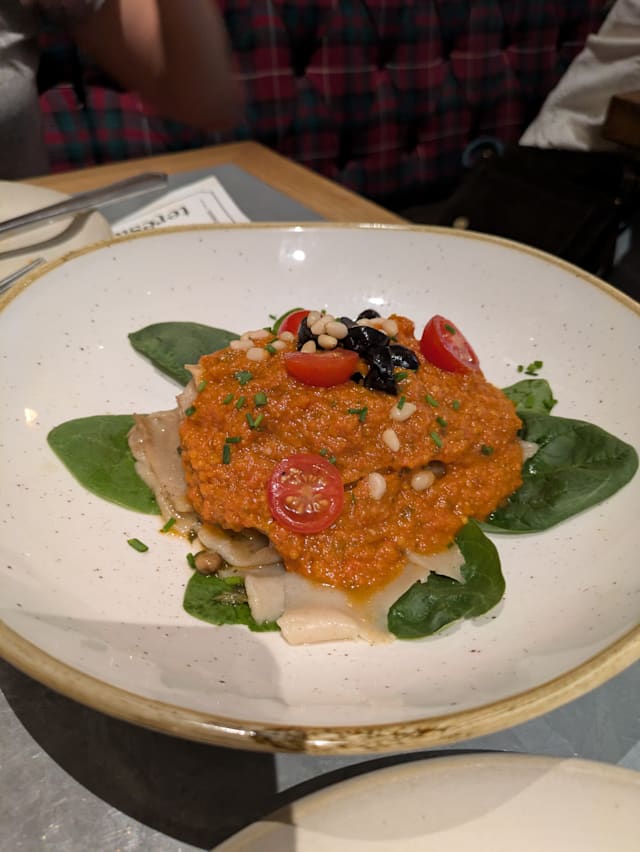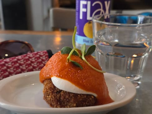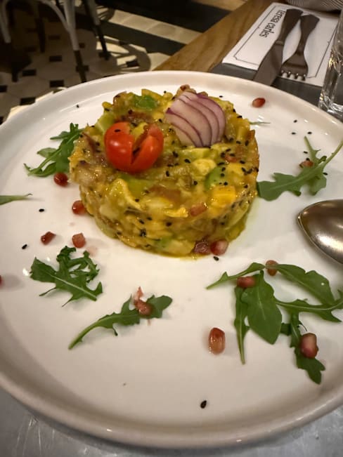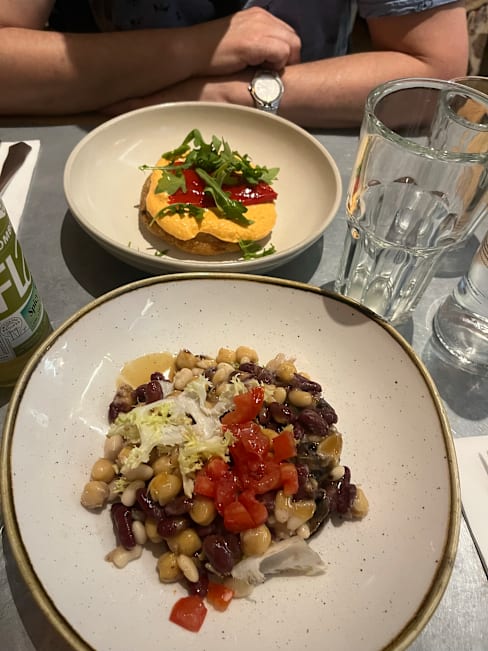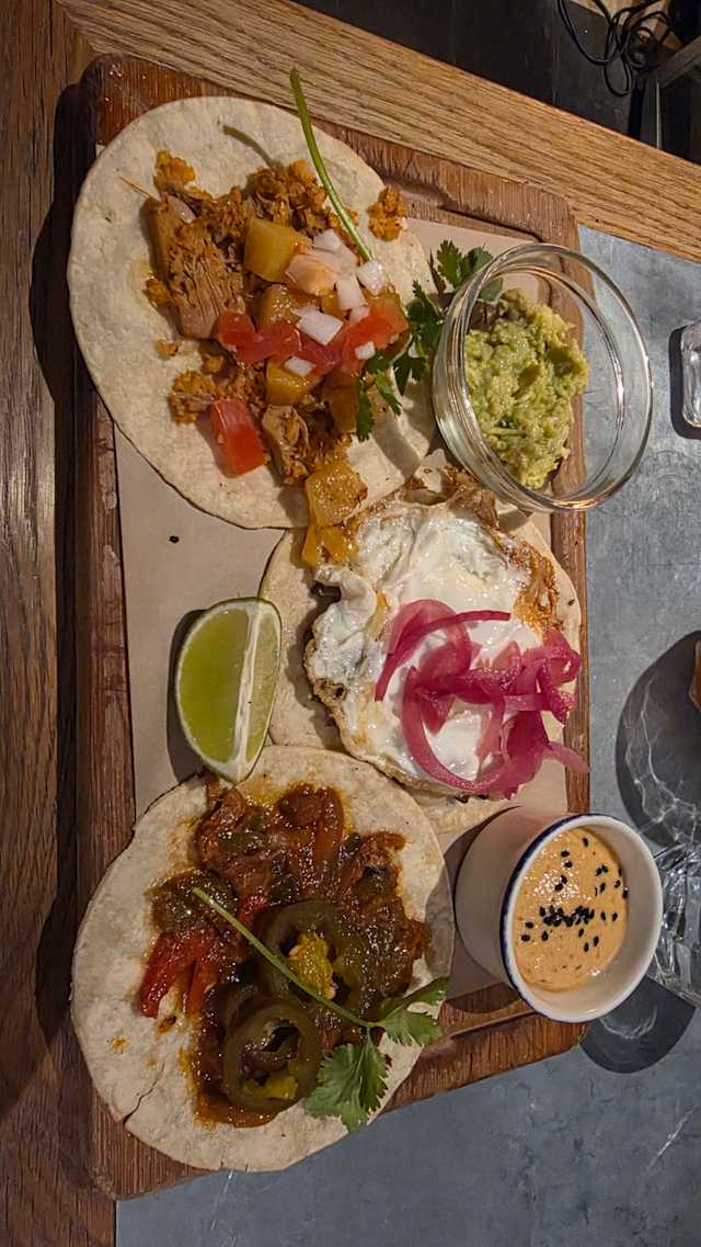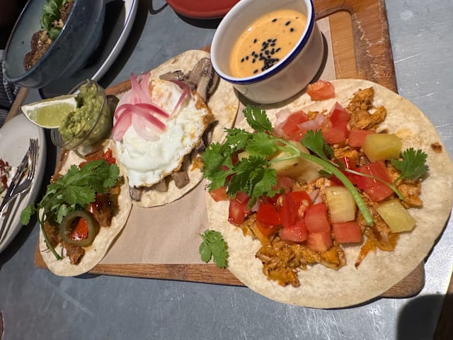 9/10Great food and some very unexpected flavor combos which were delicious! Had the Avacado Chickpea small plate with aubergine caponata. And for mains we shared the taco platter and it was very flavourful! Thoroughly enjoyed it. Finished it with cheesecake as dessert and it was one of the best we have had in a long time. Service was a bit slow but easy to hunt down if you need anything from the wait staff.