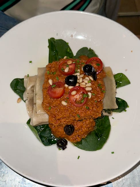 10/10The food was excellent! I got the paella dish and my sister got a Caesar salad, and we got the chocolate hazelnut mousse. It was easy to distinguish vegan vs. vegetarian. Everything we got was delicious.