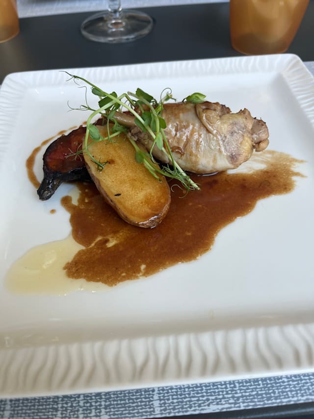 6.5/10Typique hôtel restaurant, the food is good , a lot of lonely peolpe. No fun at all. Good place to for the hotel , but to front to the lyon intern highway