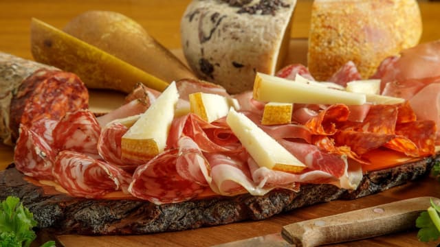 Tuscan cold cuts selection and pecorino cheeses from pienza