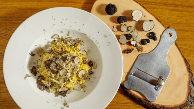 Pici with white ragù of chianina beef - try it with fresh black truffle
