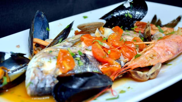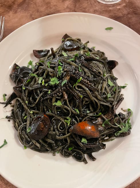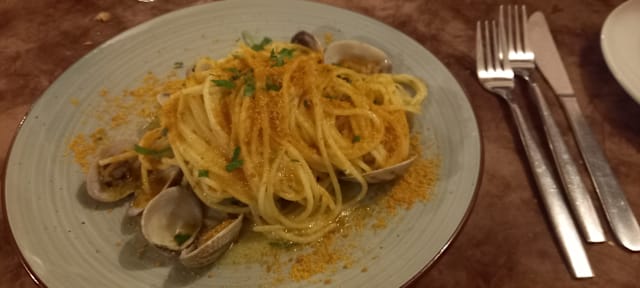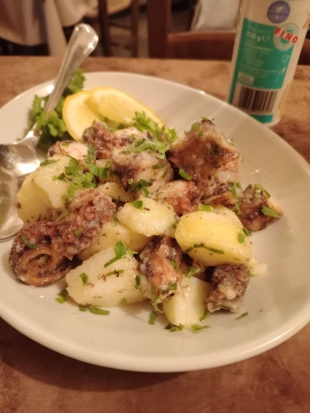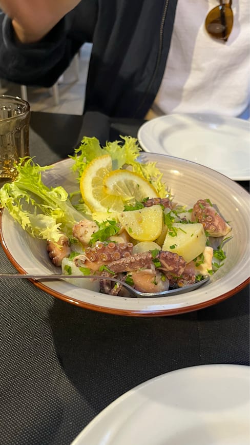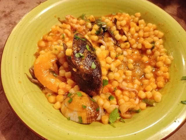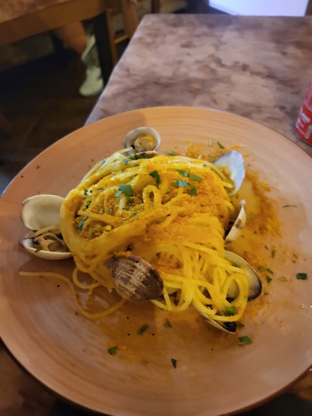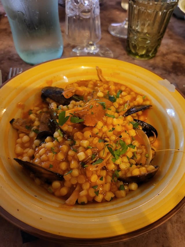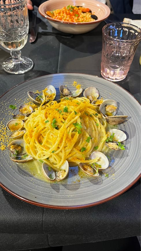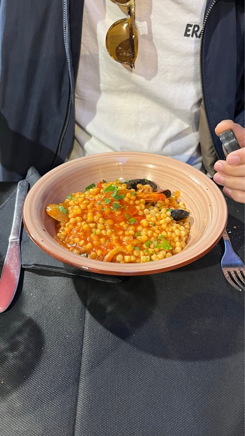 8.5/10We started with “insalata di polpo” which was an octopus salad with potatoes and it was very fresh, the octopus was cooked well as well. Then my boyfriend ordered “fregola” which is typical in sardegna and I ordered “spaghetti with clams”. Both was very tasty. Then we ordered “sebata”, the famous desert with cheese inside. All was very tasty. The house wine was also good and was very affordable. Hence I really recommend here to anyone who’d like to have some typical Sardinian dishes and seafood! 🌸 The staff was lovely, we had the fork discount as well and the service was fast.