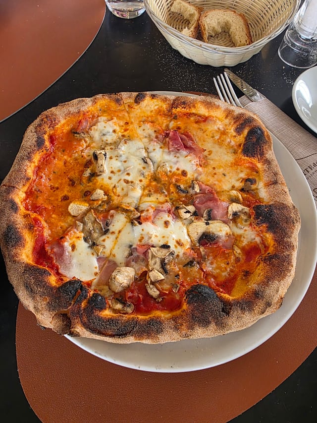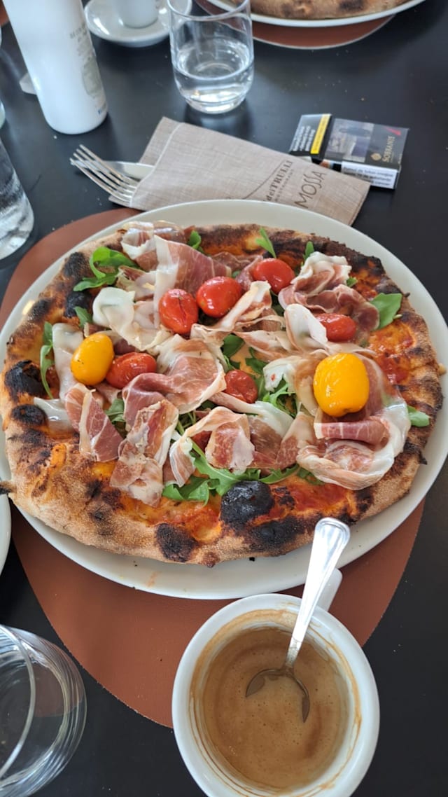 9.5/10I had the most delicious pizza and salad at Terra Mossa. I had the buratta and prosciutto crudo pizza and my wife had the very large salad we shared a little of each and I would absolutely return because the food was great and a great value.