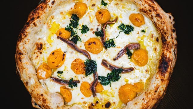 Pomodoro san marzano dell'agro nocerino sarnese DOP, mozzarella di bufala campana DOP, parmigiano reggiano 18 mesi, olio EVO, basilico