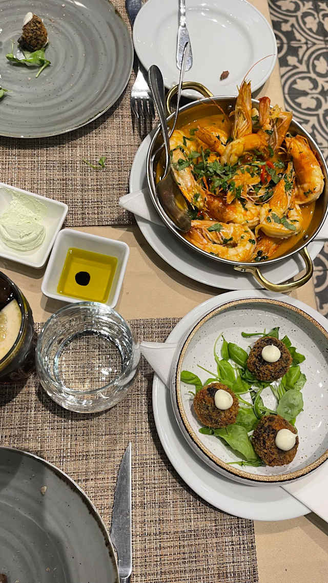 8/10Shrimp was very good. The bred to butter/olive oil proportion was not correct. Could have given 4 bread rolls, 2 of each instead of 1 seeded and another dark, considering they were quite small while the serving of butter and olive oil as a dip was quite generous. They could perhaps train their staff a bit more on tables as often they appeared confused and brought wrong orders.