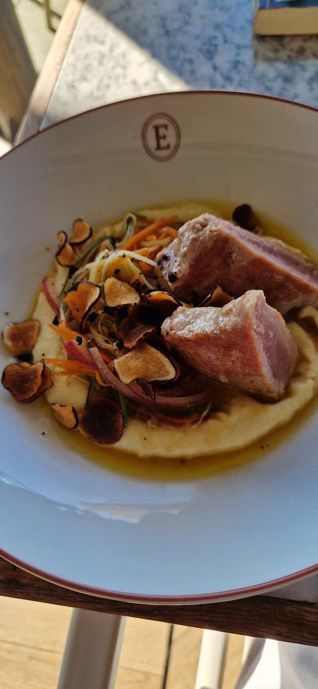 10/10The setting was spectacular (great view of Old Lisbon and the harbor) and the food was delicious. We had bread, olive oil, olives, charcuterie board, tuna (husband) and sirloin steak (me), plus chocolate mousse and cappuccino for dessert. Service was great too! Highly recommend!!!