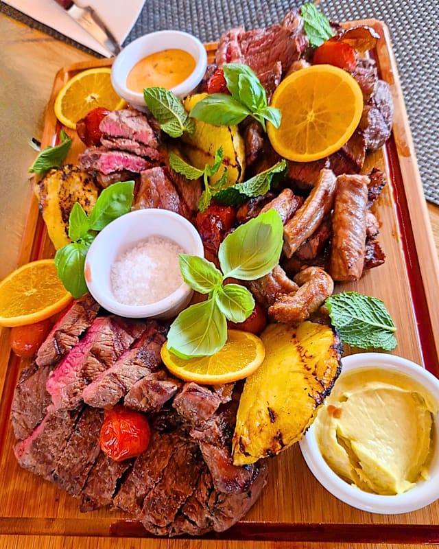 9.5/10Dinner for 2. Nice place and nice ambiance, good food. We ordered couvert + starters + main and specifically asked to bring each 10 minutes apart. Server shows up with EVERYTHING all at once. A little table for 2 😂🤣. No way able to fit everything at once and just plain nonsense to do that. Why would I want 3 course all at the same time? Server abandoned our table afterwards… someone else took over. Petty behaviour. They reheated food. I didn’t want to make a big deal and told them all was okay. Bun was soft and mushy. Other than that all was good.