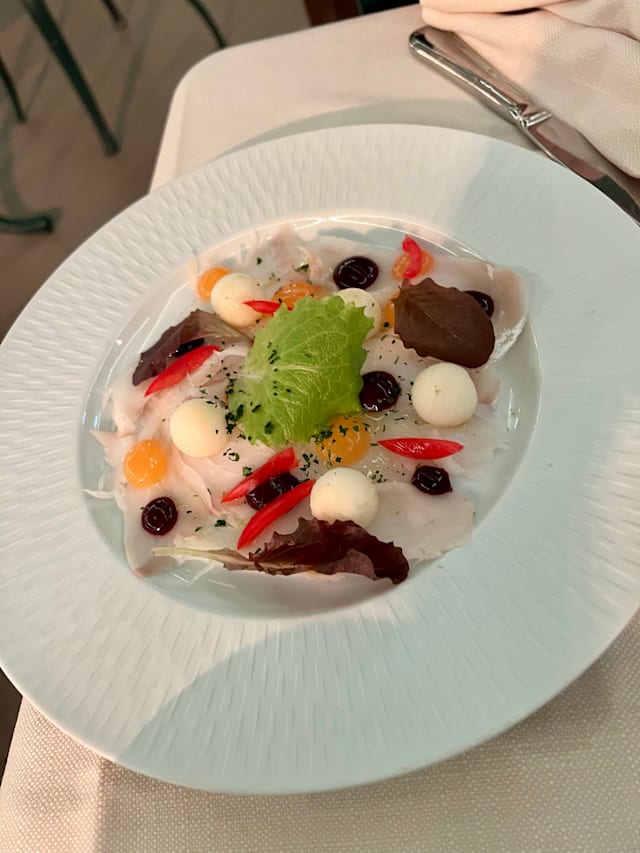 Dear Ms Catherine Liggins, Thank you for sharing your feedback with us. We’re delighted to hear you enjoyed the cocktails and the views. Regarding the food, our menu is also available on The Fork so that guests can get a clear idea of our style, Mediterranean cuisine with some creative reinterpretations. Fruit is often paired with fish in a few of our dishes and is usually very well appreciated, but of cours,e we could have prepared it without fruit if only you had asked. Kind regards, Alessandro D'Ilario General Manager