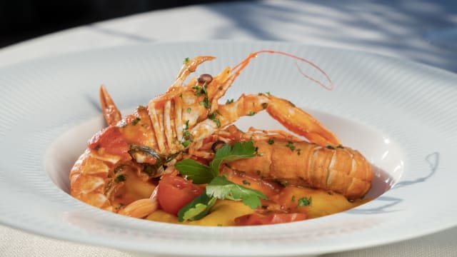 Ravioli ripieni di scampi* in salsa di pomodoro e scampi