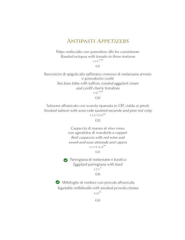 9.5/10Lovely rooftop area with a great view. The mackerel antipasti and was blown away by the inventive mix of flavors. He also has the spaghetti with clams and the amberjack which were also very good. I had the Gricia since it is a Roman specialty. It did not disappoint. And the vegetable strudel , which was very flavorful. The delaquoise was wonderful. The service was fantastic! Highly recommend.