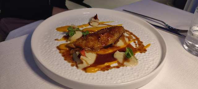 Con sedano rapa, crumble di scalogno e carote alla vaniglia
