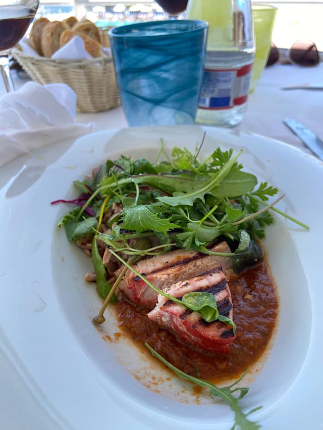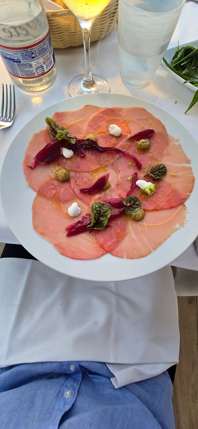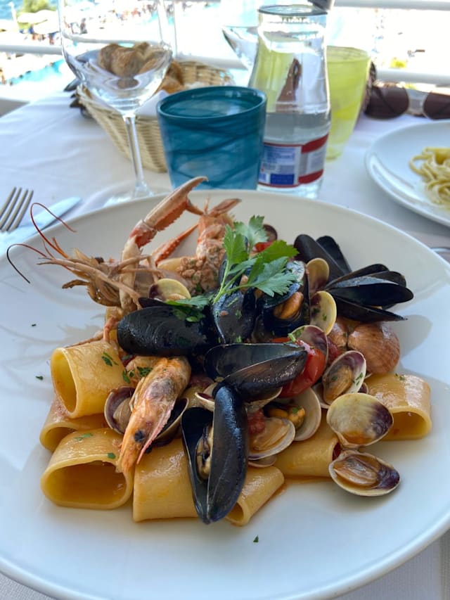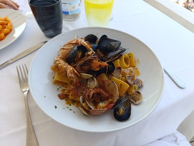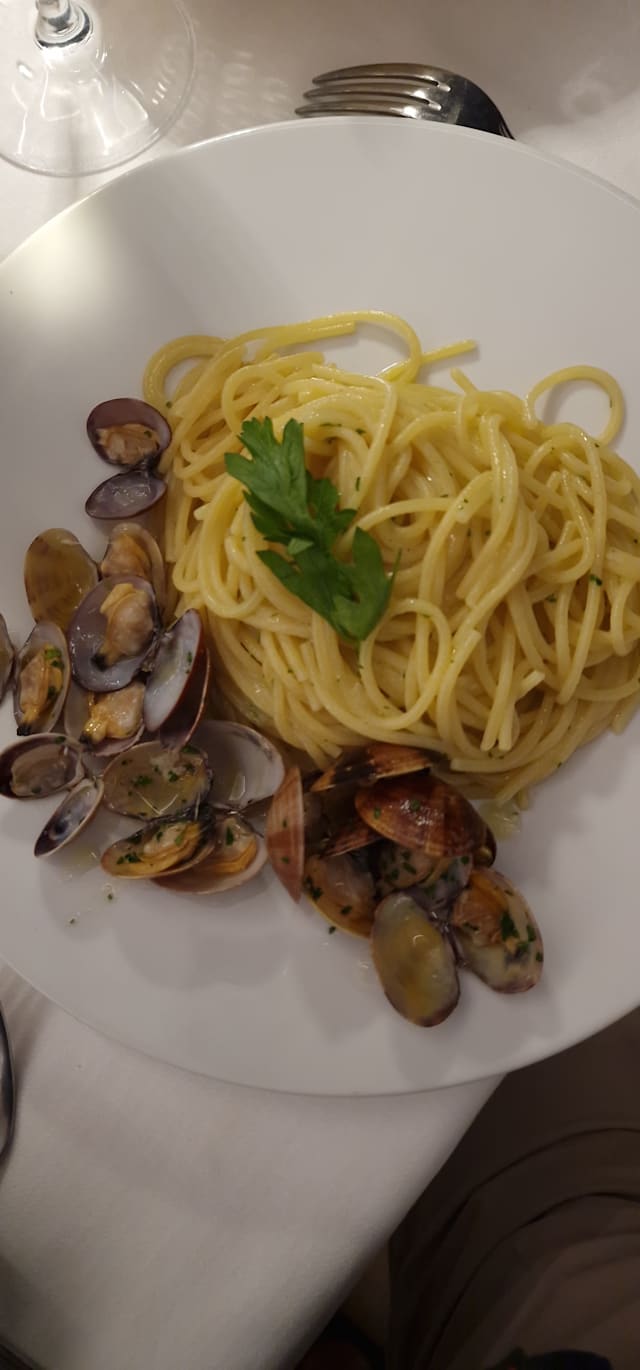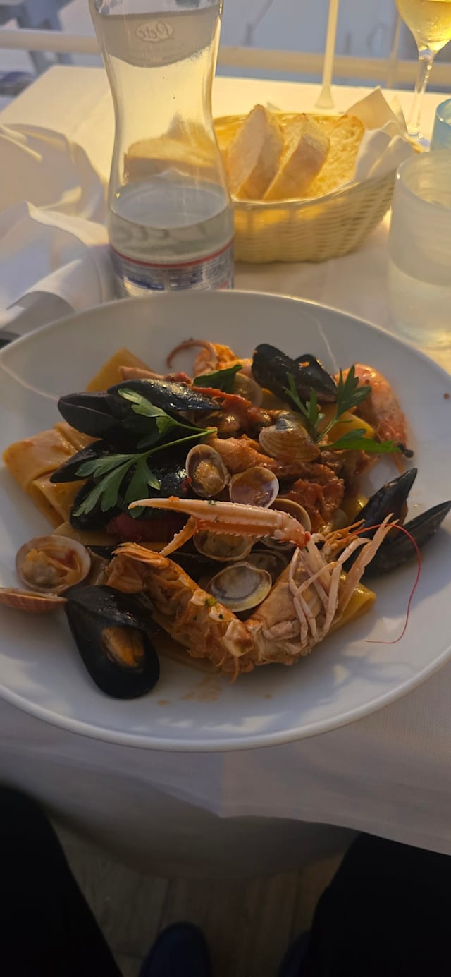9/10Very friendly head waiter, gave good advice on wine and didn’t rush us (although there were only us and a cooking class group in there for most of the meal. ) The food was good but not excellent and fish was overcooked. Chewy squid and octopus. Dry salmon and very over salty tuna and puttanesca sauce. Vongole were excellent put only 6 in a spaghetti vongole seemed a bit mean. View and setting was lovely and hotel reception staff excellent.