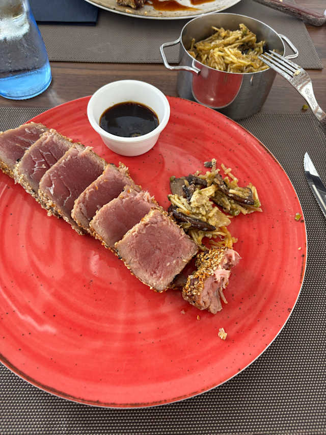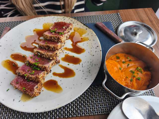 9.5/10We went to Terrazza on a sunday night to have dinner. The place was less than half full so we got the best experience we can get. The food was very good, both the meat and the tuna, as well as the side dishes. Recommend the risotto and the vegetables. The black beans were also good. Regarding the meat, recommend the honey pork ribs. Must try definitely. At the end, with the fork discount, we payed a fair value for the meal, and we’ll give it another try for sure.