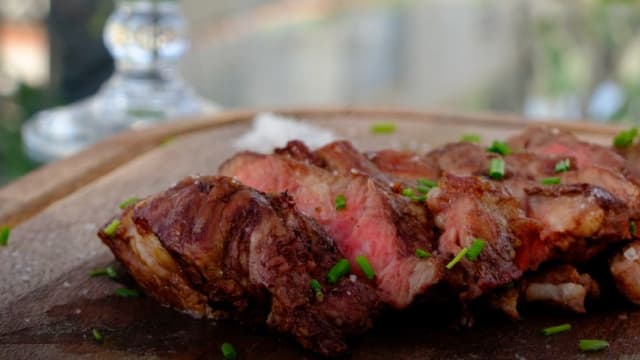 Pedaço de vitela, marmoreado e com um fantástico sabor, apenas preparado com sal, pimenta e grelha
