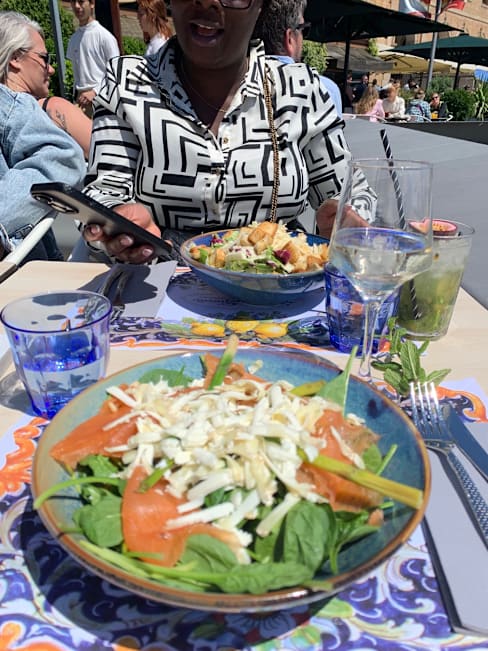 9.5/10Large and varied menu. Salads, fish and pizzas all delicious. Drink service a bit slow, but servers were friendly and we had a very enjoyable meal.