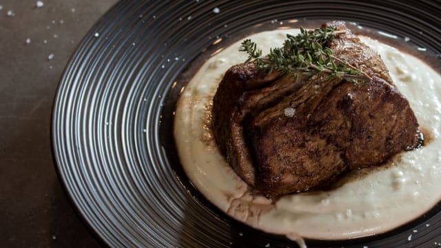 Pedaço de vitela, marmoreado e com um fantástico sabor, apenas preparado com sal, pimenta e grelha