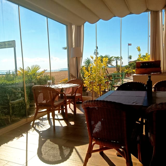 Modern and contemporary design of the restaurant. The terrace is amazing and you can spot the sea water just few metres away. Service quite good and friendly staff. Recommended.
