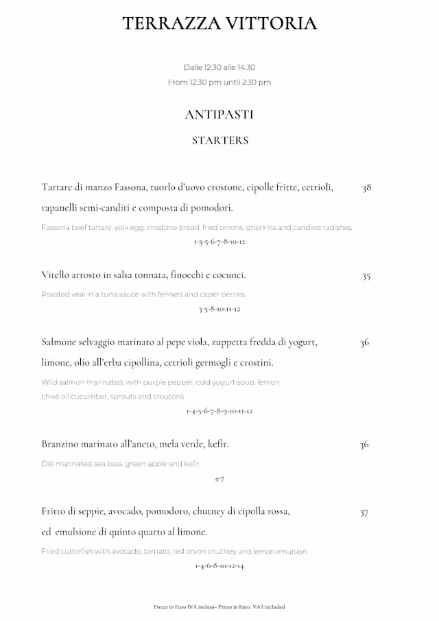Thank you once again on behalf of myself and the entire staff at Terrazza Vittoria.We look forward to welcoming you back to our restaurant in the future.
