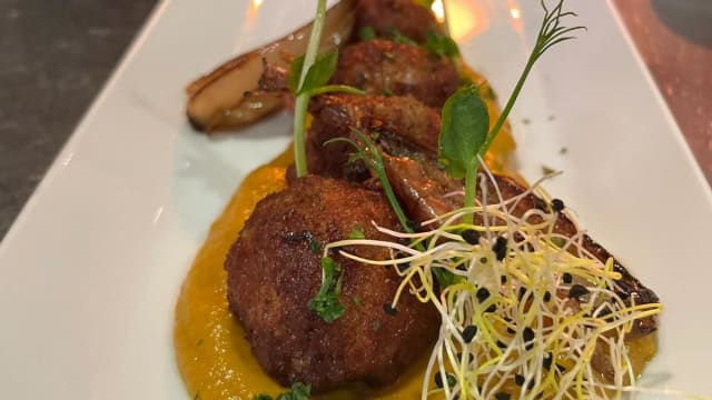 Côtes d'agneau grillées servis avec blettes et potimarron