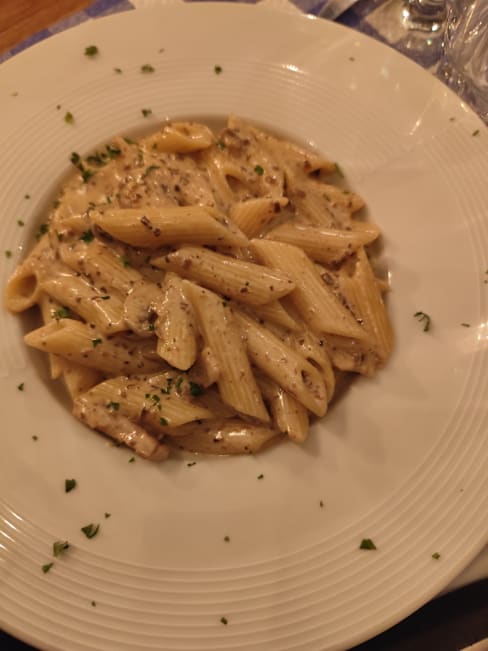 7.5/10with the fork discount a good value. The chicken Ceasar salad was generous, lots of crispy chicken. Be aware this isn't really a Ceasar salad - more a mixed salad but it was excellent. The pepperoni pizza was nice but nothing special. Nice touch: a little lemoncello at the end of our meal.