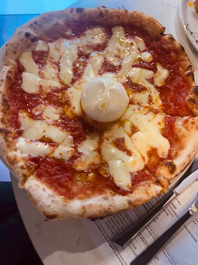 - Pomodoro, fior di latte, burrata, rucola, prosciutto crudo