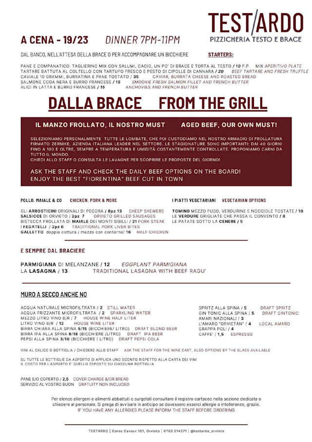 10/10+1Service from Fabiola was excellent!! Incredibly passionate, knowledgeable, warm, and personal. The best service I've had in Italy. I arrived to Orvieto at 4pm when all other kitchens were closed. I gave Testardo a shot and wound up eating here 3 times in two days due to the lovely experience. A wide variety of creative salads, Umbrian specialties, excellent wines, and ingredients hand-sourced from around the world. The staff were all a pleasure, but Fabiola - who I had a couple nice chats with - made the experience feel heartwarming and as though I belonged. Orvieto became a highlight in my trip to Italy, and I really hope to return someday soon.