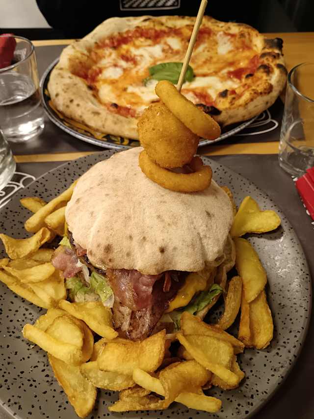 - Hamburger di scottona italiano 220 gr bacon insalata pomodoro provola maionese al pepe nero