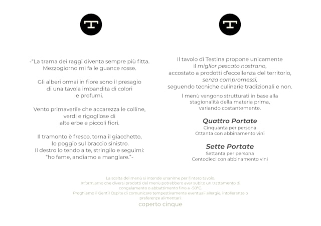 9/10Returning with a skeptical husband & two international wine & food enthusiasts for my birthday dinner proved most successful overall , thank heavens. Chef Ivan ably maintained his superb savory courses that I’d enjoyed so much previously ..but alas he just slightly dipped with the dolce course regrettably not as stunning .. & sadly the watery ‘ice cream’ a total fail. Small quibbles maybe , but disappointing nonetheless. The gracious ambiance of the sophisticated dining room is somewhat disappointingly realised to be as good as it is when a visit to the dated & overlit toilet is made .. it clean & there’s everything one needs (& it’s provided thoughtfully …), but it’s a bit of a let down when otherwise a fantastic toilet visit can be a very positive experience & a satisfying sensory experience - which I’d have thought was what Testina would be aiming for. I’ll certainly be back for Chef’s dazzling cooking, & I’m hoping to find a singularly worthwhile experience next toilet time also!