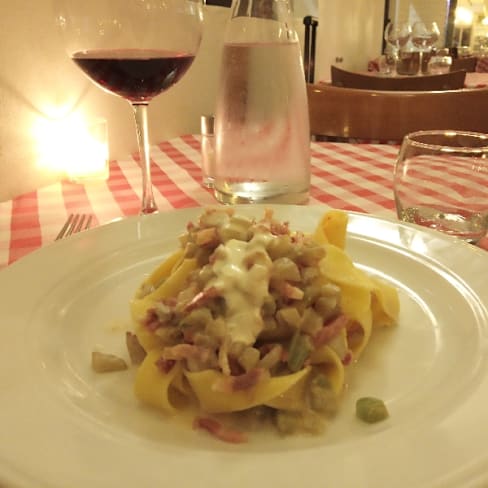 10/10I had an incredibly delicious late dinner with Papardelle con pancetta and La crema catalana. There were not many people, so the atmosphere was very cozy and private and the staff was really friendly.