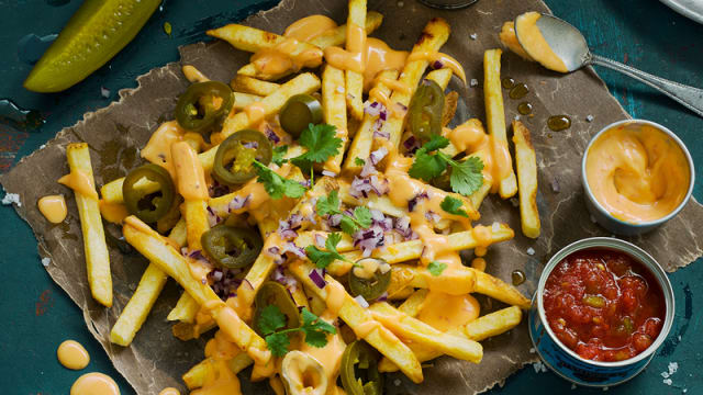 - Välj mellan salsa, guacamole, jalapeño cheese sauce eller texas no bean chili