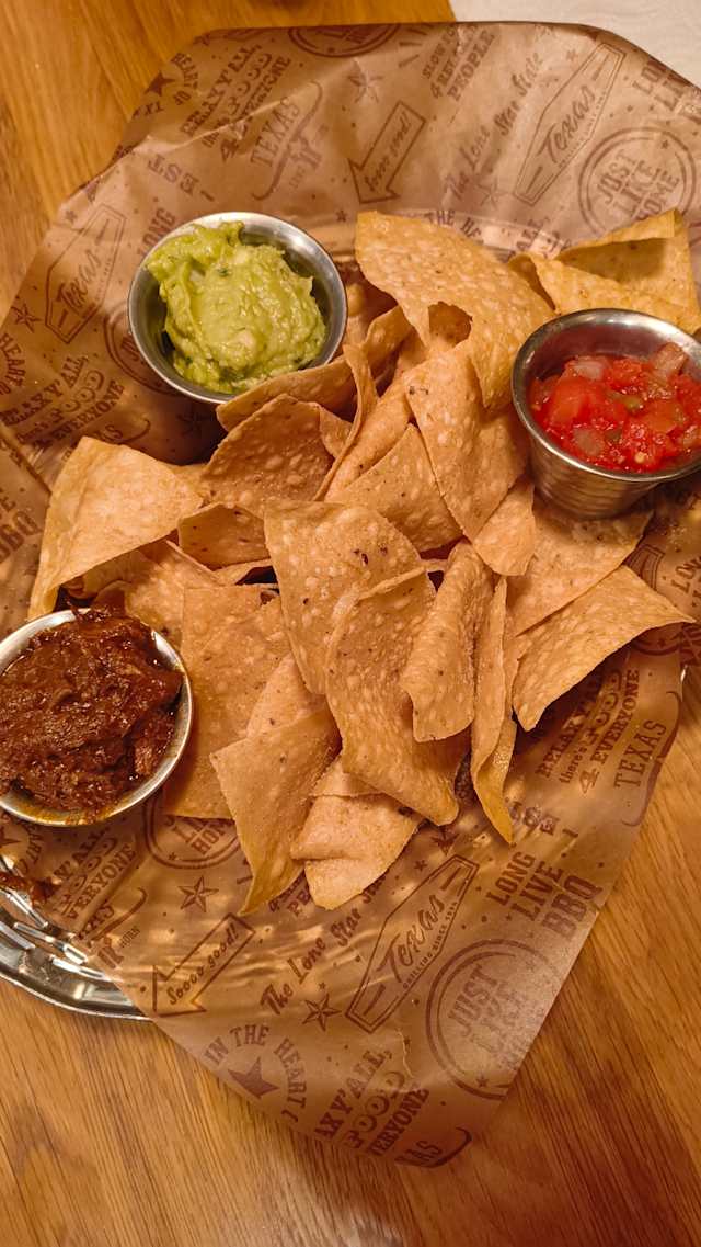 - Texas köttgryta med 100% högrev serveras med salsa, guacamole, gräddfil, svarta bönor & varma vetetortillas
