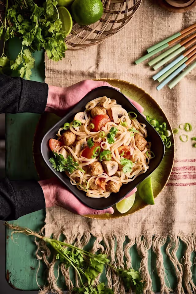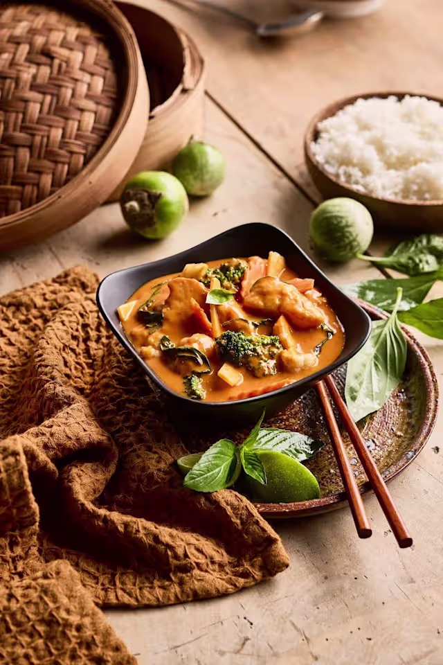 - Haché de poulet épicé au basilic frais et légumes sautés