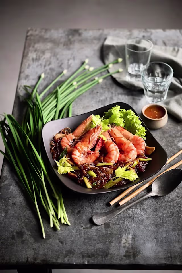 - Croustillants de crevettes nobashi, basilic thaï, sauce aigre-douce, piment sucette, yuzu (4 pièces) by yves mattagne