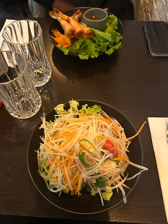 10/10+2The food is amazing and the staff/ boss is nice! It happened to be Halloween so children kept coming in to the restaurant but that didn’t bother him to make us a memorable night! Everything was homemade, especially the nems were so fresh and crispy. The papaya salad was so refreshing even though it’s a bit spicy. The Tom yum Kai was creamy and spicy-sweet which tasted so authentic. It is really worth the price ! The restaurant is small so better to make a reservation in advance.