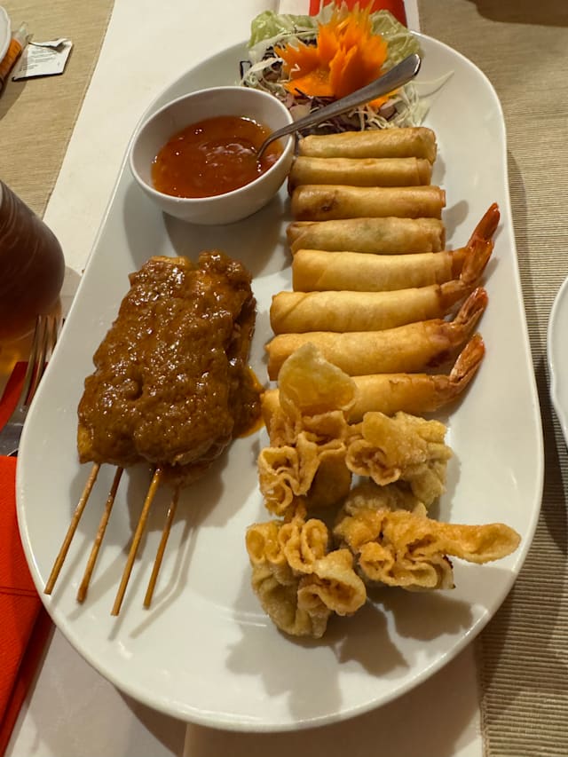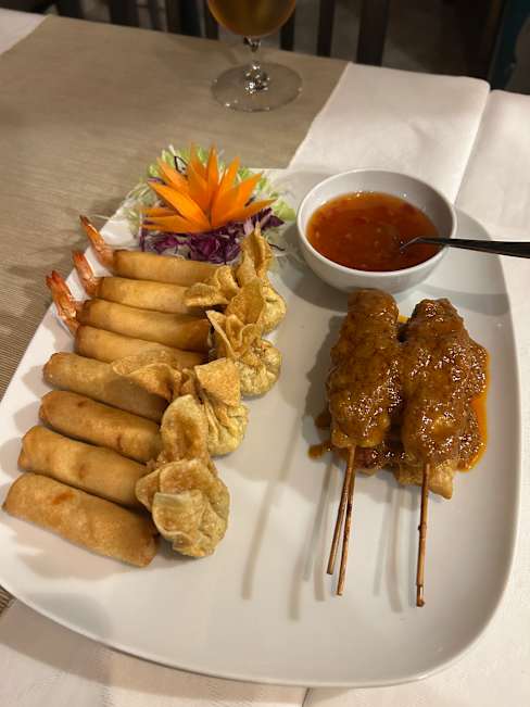 10/10Thanks to The Fork app for leading us to a wonderful hidden gem near our hotel. Prompt attentive service, delicious authentic Thai cuisine. Tried the platter of mixed starters, pad thai and chicken with basil with rice on the side. Flavorful, well portioned for sharing and enjoyed by our group. Highly recommended and would return to try the other dishes and their lunch specials.