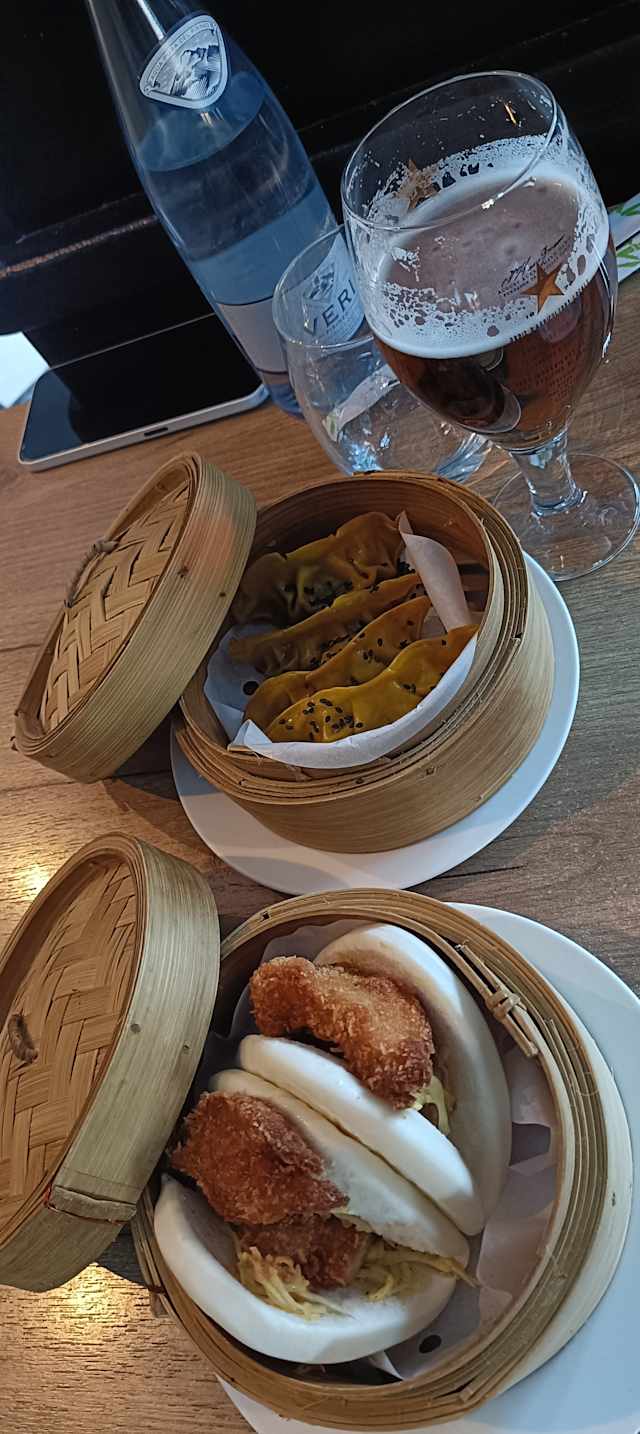 - Relleno de carne 12h a baja temperatura, pepino y cebolla crujiente