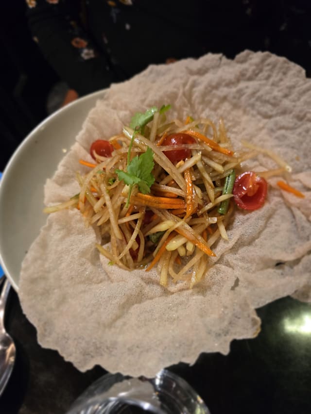 10/10Im Thai and I think the food (at least the dishes that I tried) are quite authentic. I did ask for the medium spicy. I had the green papaya salad (Som Tum) the first time I went. It was so good I went back a second time within a few days. On the second visit, we had the green papaya salad (again…still excellent), Pad Thai with shrimps and stir fried beef basil. All were good. Khun Toto, our Thai server, was excellent and very accommodating, The restaurant has a lovely outdoor terrace. I will certainly go back again on my next visit to Paris.