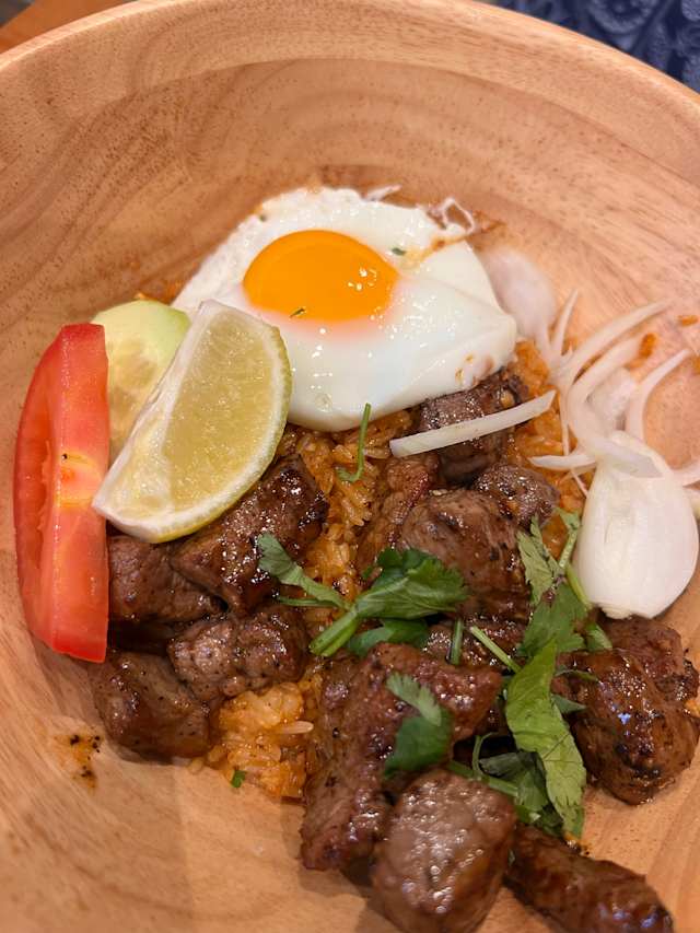 Servit avec une salade de choux ou un bol de riz ou un bol de soupe.