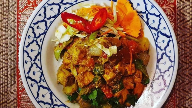 keuze uit de massaman curry of wok met cashewnoten.