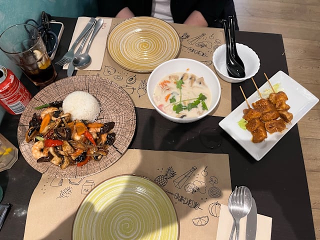 6/10The main dishes were really good, and decent portion. But the appetizers are extremely small for the high price they have. Not worth getting them at all. We got a chicken sautéed skewer and it was paper thin. The Thai iced tea was beyond too sweet. And the last thing but also important to mention: we went using an offer of 30% of The Fork which stated that the discount applied to everything except set menus or drinks. Well, we got a dessert and it came on the bill at full price, and I would never had ordered it if I hadn’t thought it was at reduced price.