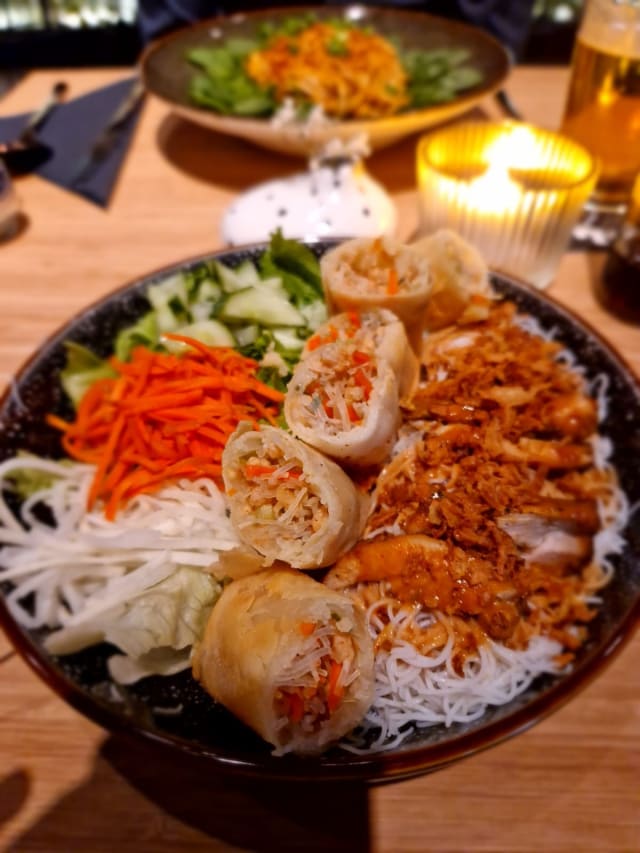9/10Good food, simple dishes. Great for vegetarians but they also offer some meat options or add-ons. There are so many restaurants nearby, though, with an outdoor terrace or along the water that I am not sure I would return, except with a promotion like we had.