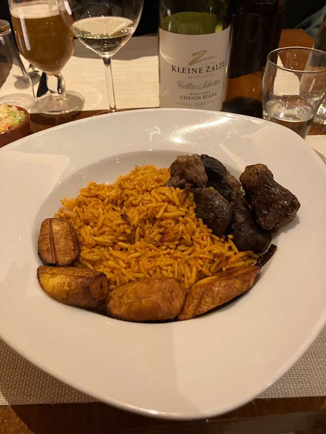 Mals gegrild geitenvlees, gemarineerd in een rijke, aromatische balans van afrikaanse kruiden.