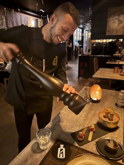 10/10A visit to Alchemix is a journey. This incredible experience is a fusion of cocktails and selected food that will not leave you indifferent from one new plate to the next. The friendly staff is actually your companion, explaining both the ingredients and the story that brought the flavors to your table. A visit to Barcelona was made with this incredible experience top of the top. Superb!