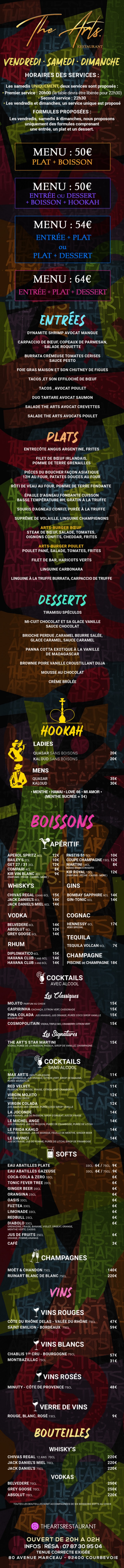 Menu WEEK END ENTREE + PLAT + DESSERT€64 per guest