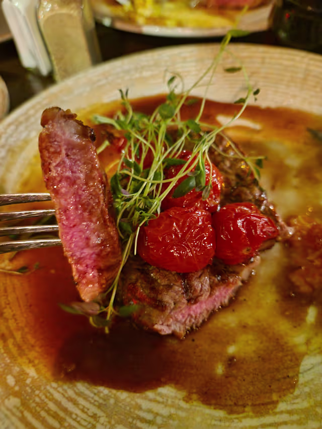 10/10We both ordered the entrecote steak, and enjoyed probably the best steak we'd ever tasted. Wonderfully flavoursome and beautifully presented. Highly recommended.
