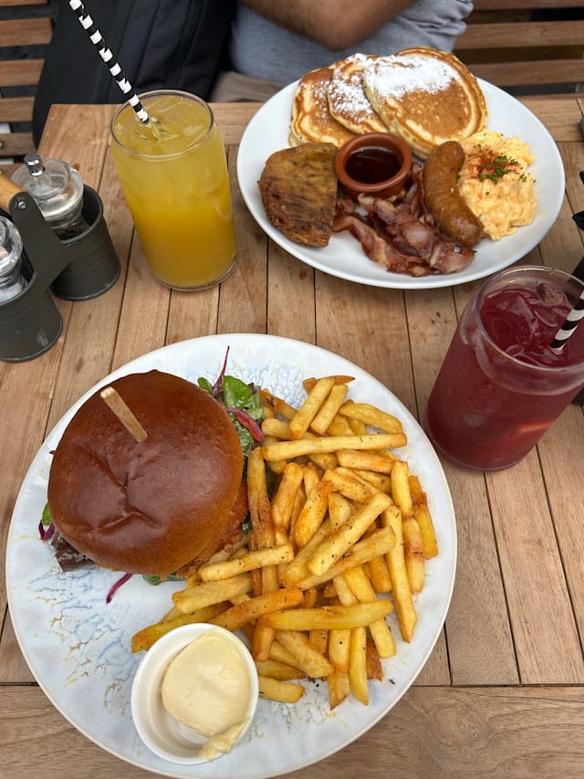 5/10Our original waitress had a very strange attitude and left us unattended most of the time but thankfully others stepped in and salvaged the experience. Breakfast/Cesar salad was good, waffles crisp and sweet; I image the breakfast crowd and ambiance is better as this was a weird hour in the middle of the day; late lunch.