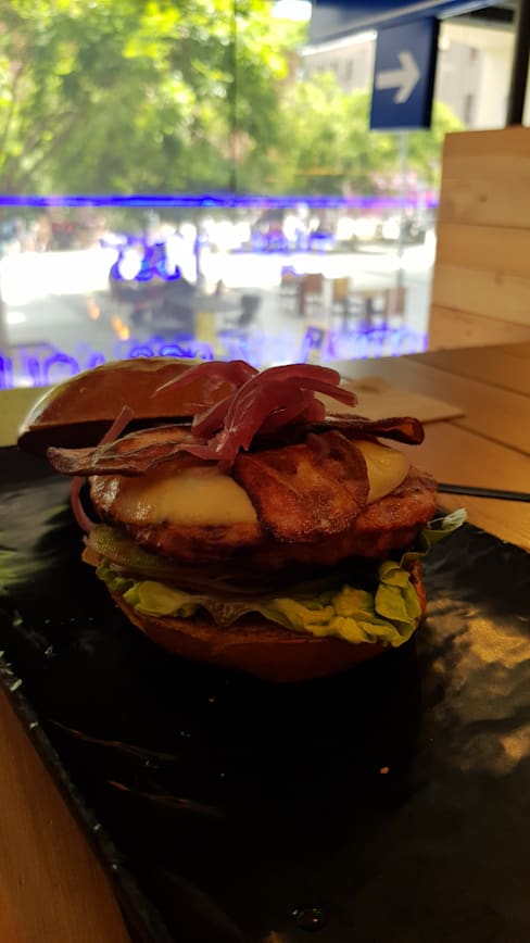 10/10Amazing place for a burger. It is very particular and perfect with friends. Super friendly waiter and good food.