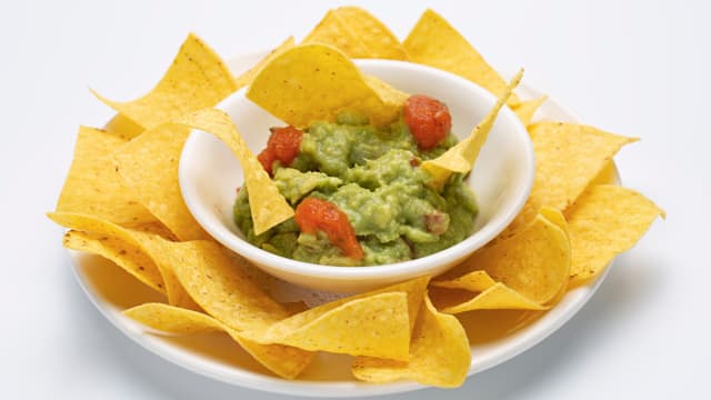 - Avocado, pomodoro, jalapeños, cipolla, limone con chips di mais della casa