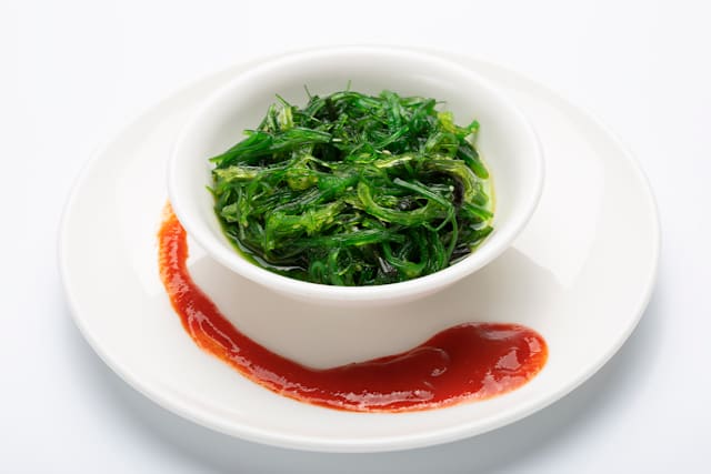 - Insalata mista, wakame, ravanelli, cetrioli, pesce fresco del giorno misto al wasabi yuzu dressing, katsuodash